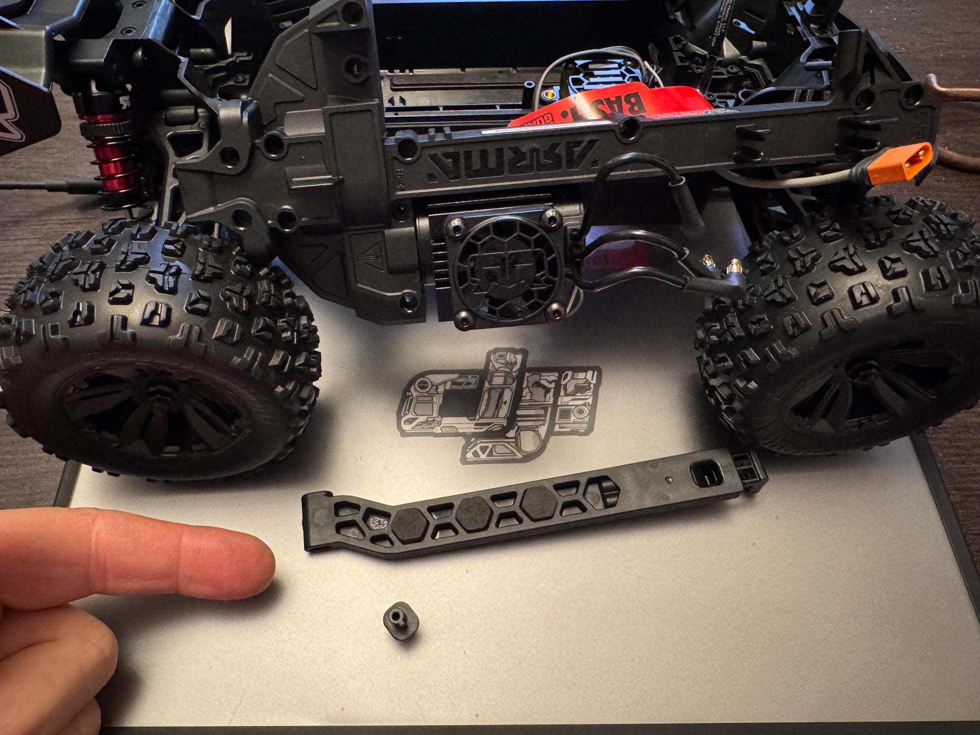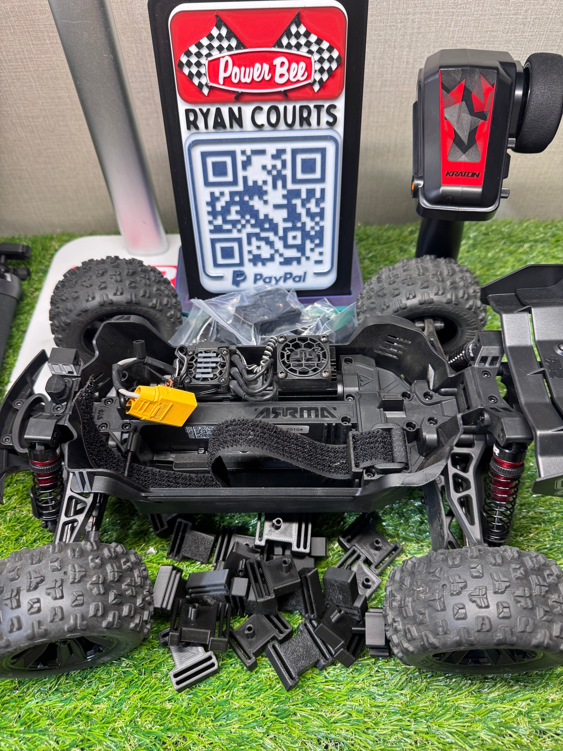 This Velcro Strap Battery Bracket replaces the factory battery tray arm on the Arrma Mini Kraton and solves a common problem: aftermarket batteries that are too large for the stock tray to close.