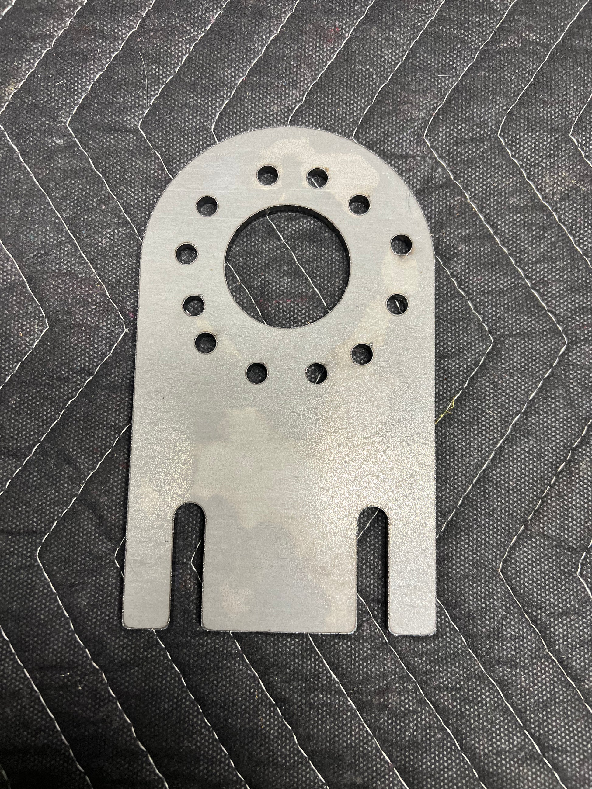 This side plate engine mount is plasma cut from 1/4" thick steel. It has 3 different possible engine mounting angles. It also has up and down (and slight angle) with the bottom slots, and left to right engine alignment with the cast aluminum mount base. This is the perfect setup to get the most out of your Mac Go Kart racing engine. The side plate can be purchased by itself, or as a complete mount with the base plate.